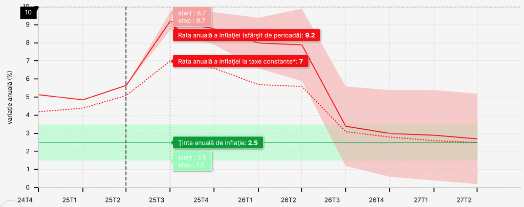 Creșterea abruptă a inflației vine pe fondul mai multor factori. Eliminarea plafonării prețurilor la energie și pachetul de măsuri fiscale anunțat de Guvern au contribuit direct la accelerarea scumpirilor. Estimările BNR indicau deja o inflație de 9,2% pentru septembrie, cu o posibilă scădere abia spre finalul anului – până în jur de 8,8%.